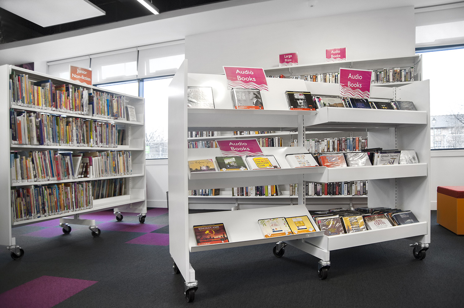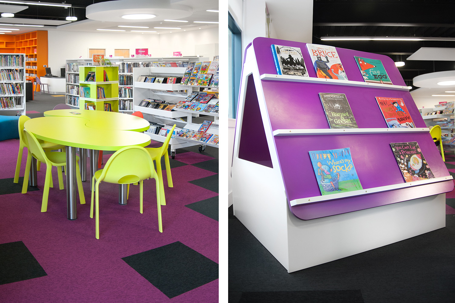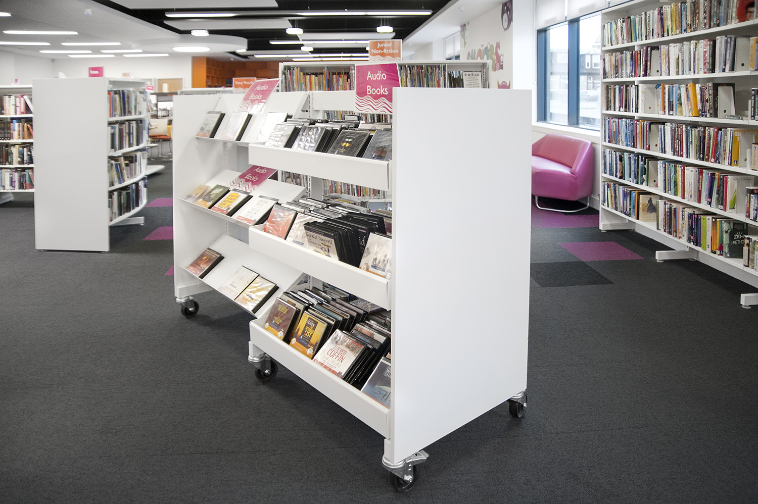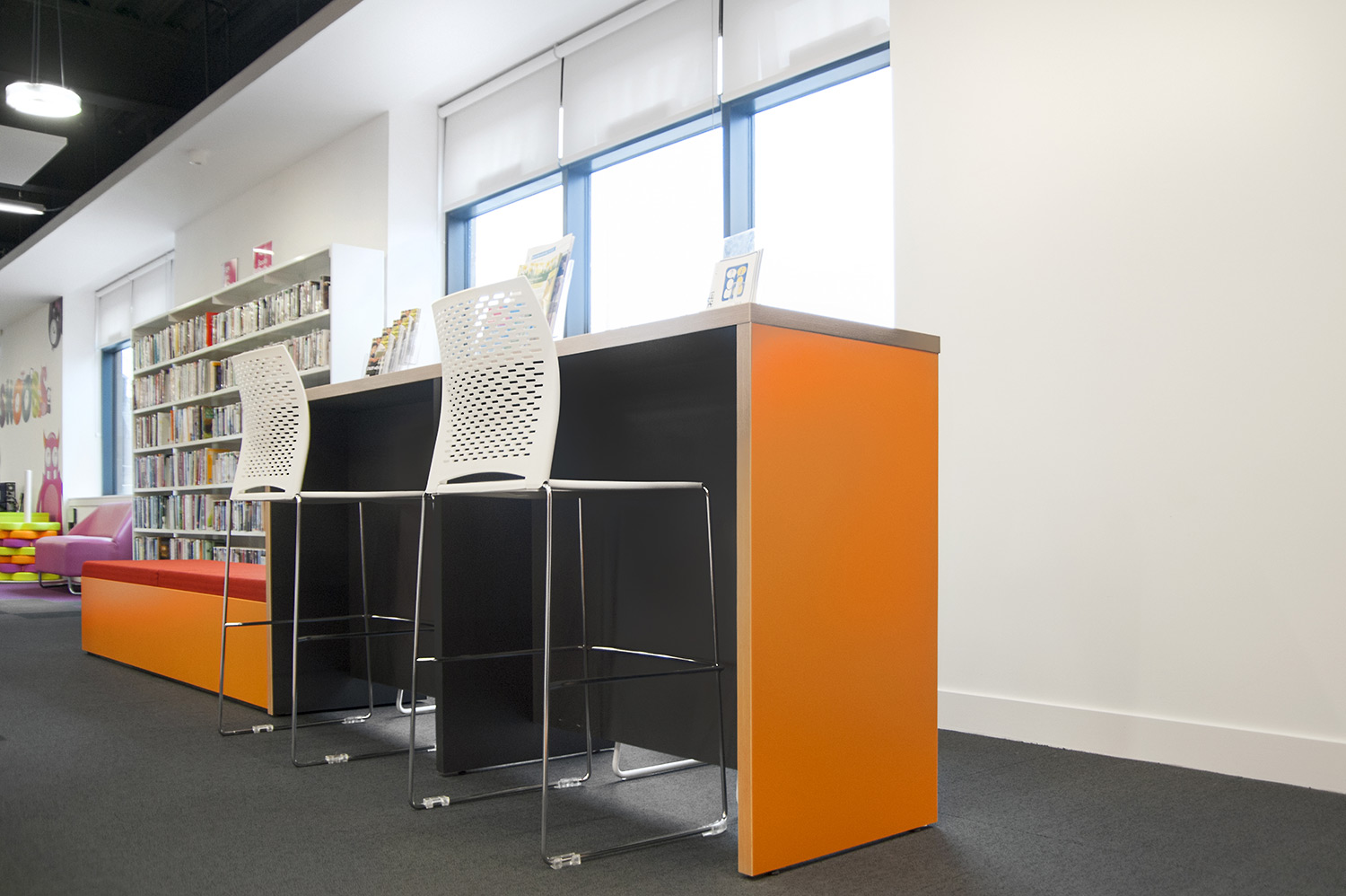 The Design Concept were instrumental in the design of this library together with the flooring, lighting and graphics to ensure we delivered a cohesive design. We worked closely with the architects Holmes Miller and members of the library staff to ensure we were able to meet the library brief.