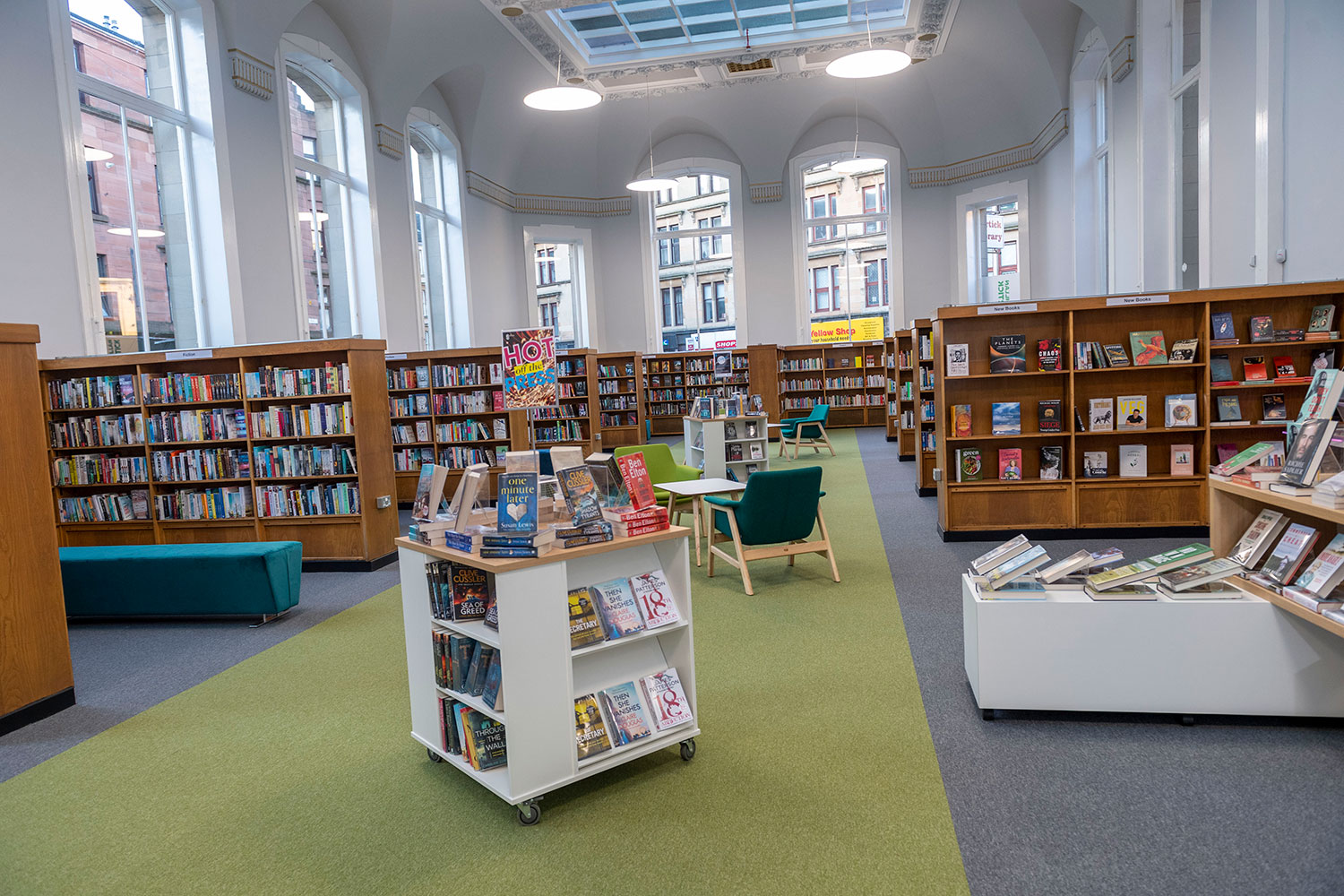 BCI 60/30 freestanding mobile shelving is used for easy flexibility in the Children’s area and bespoke wall mounted shelving meets requirements set out for the space by Glasgow Life.