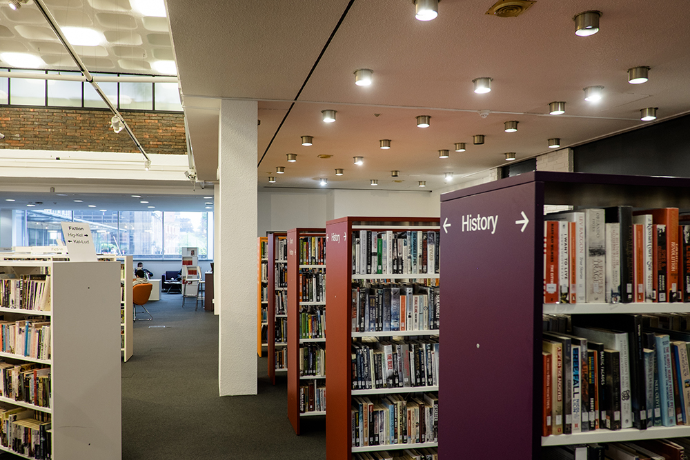 Now a community hub, the space has been used to its full potential and is a success with students eager to study, local artists who can showcase their own pieces as well as view fellow artists’ work and children spending their day playing/reading while parents relax and keep a watchful eye. The library space itself is now modern and vibrant through the use of colourful graphics and contemporary furniture.