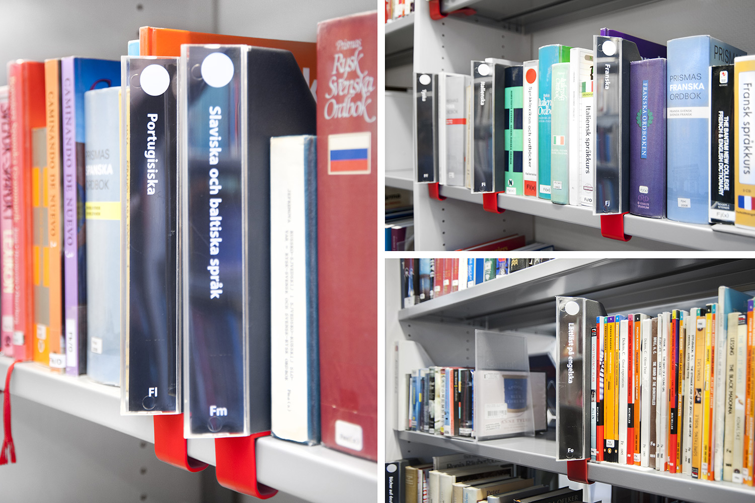 Foldable label holder protruding from the shelf.