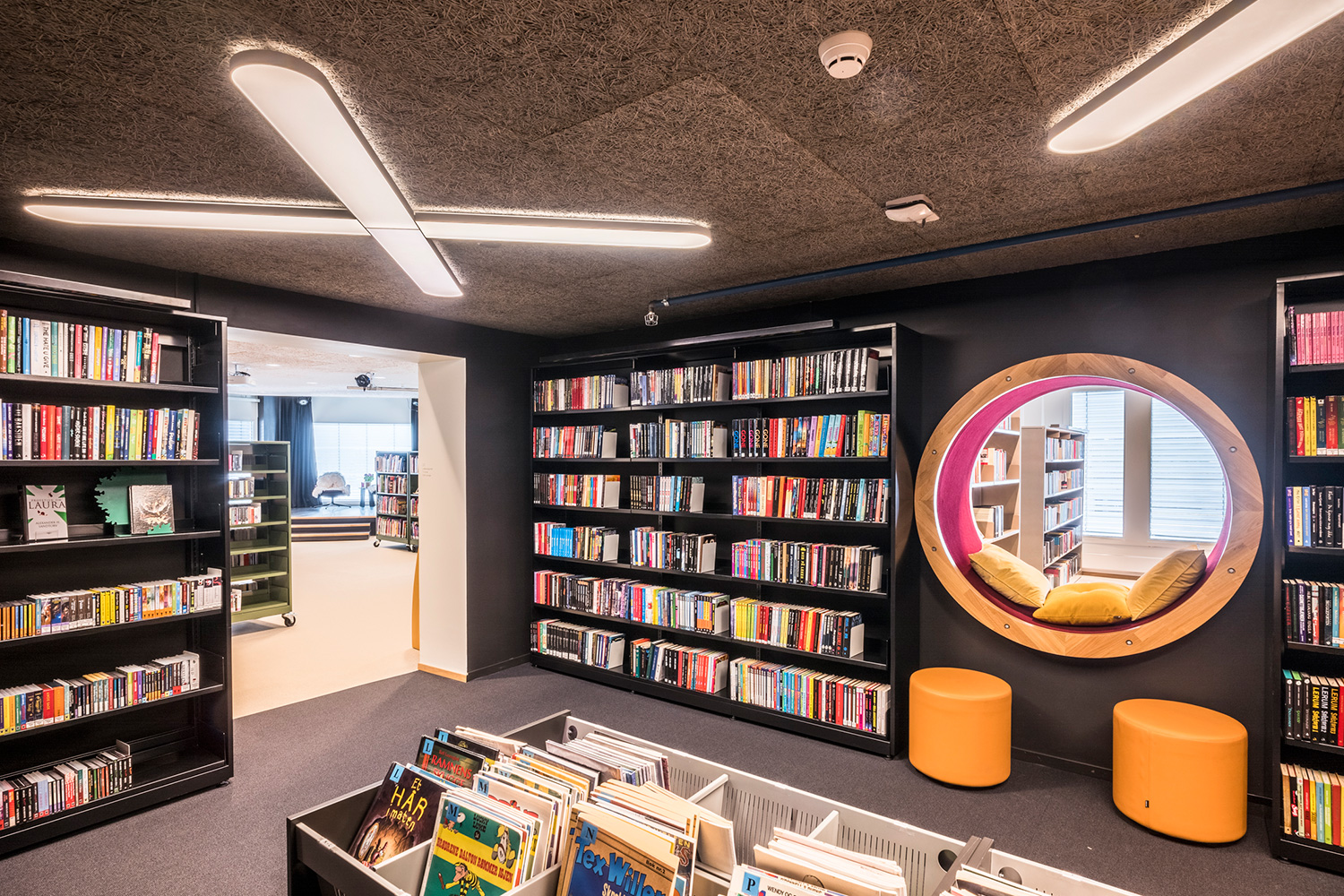 Many combinations can be achieved with this browser. It is available as a single-sided or double-sided unit; as free-standing or as an add-on; and in three different heights. It is ideal for larger books and maps, but also suitable for DVDs with the use of moveable metal dividers.