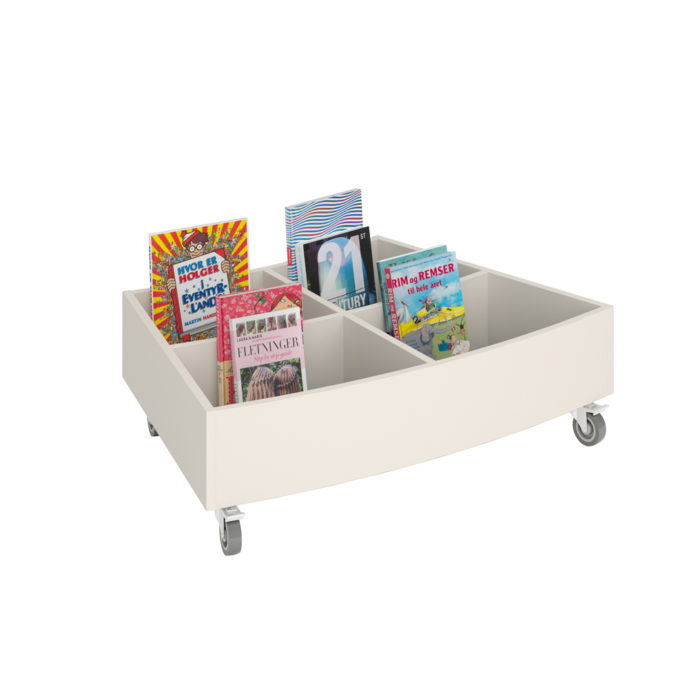 Sara Midi is a picture book browser with four display compartments at the top and four storage compartments underneath. Ideal for children.