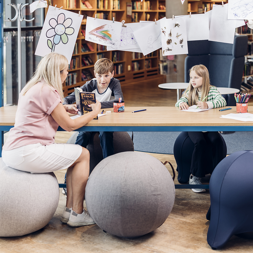 A perfect complement or a direct alternative to a normal chair and it is at the same time a small sculptural piece of furniture that fits in everywhere in the library. E.g. in study environments and seating groups. Or why not place it in between the long rows of shelves for a quick sit down while browsing through your next book.