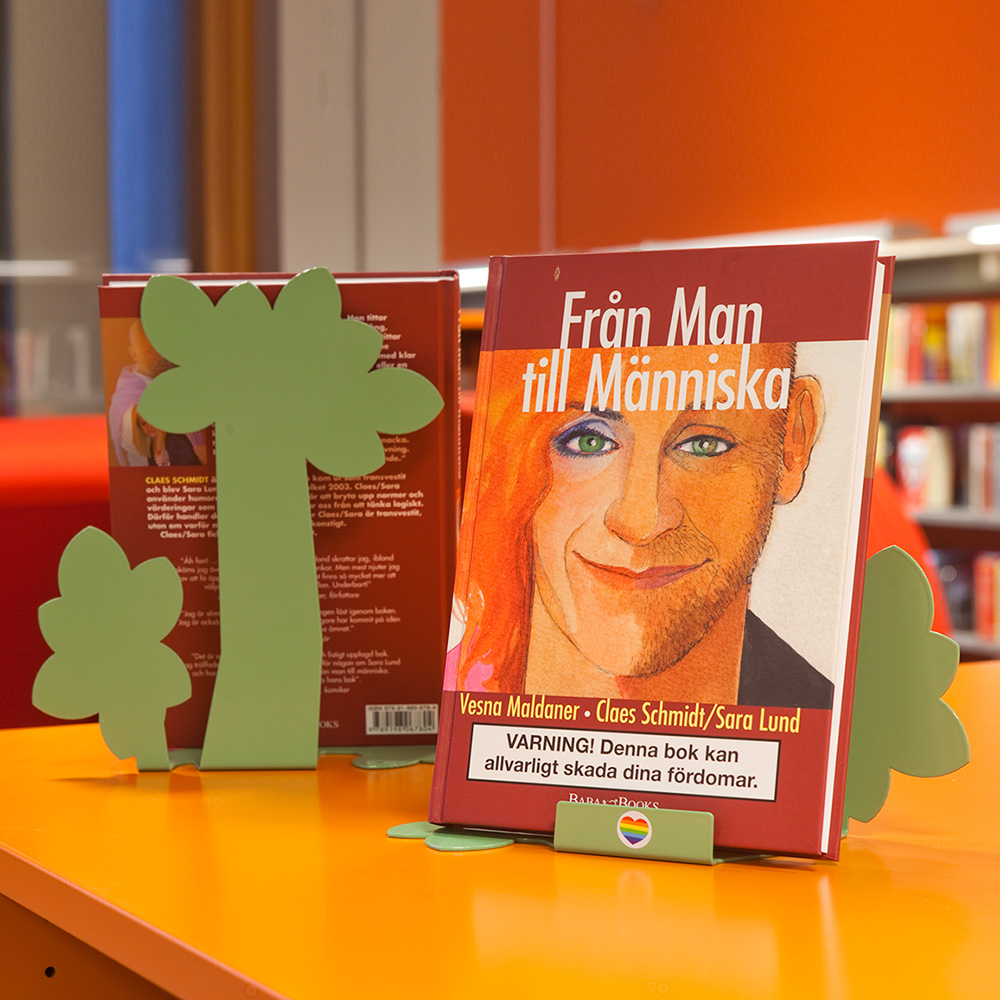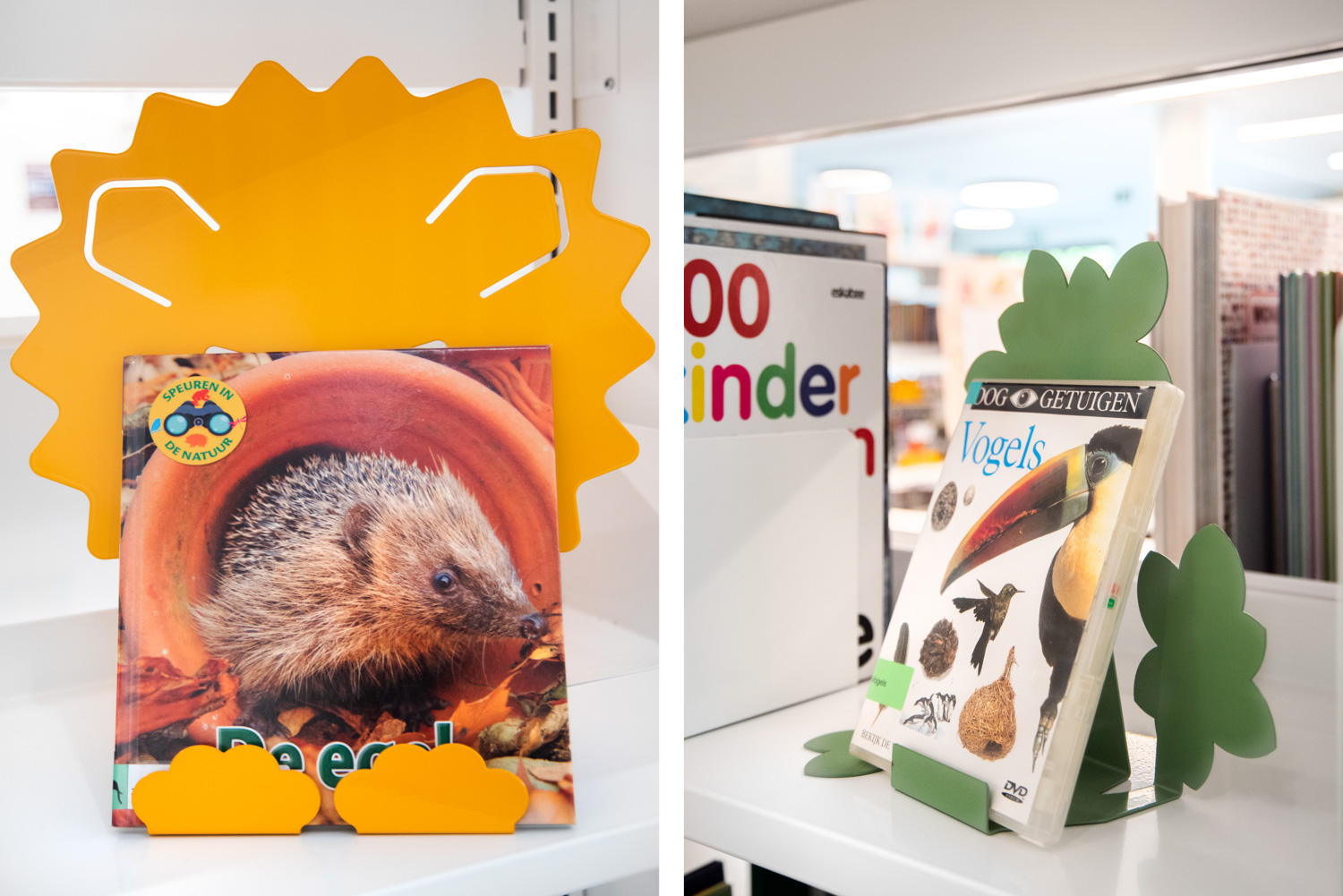 A decorative and eye-catching front display stand for presenting also larger volumes with a generous display depth.