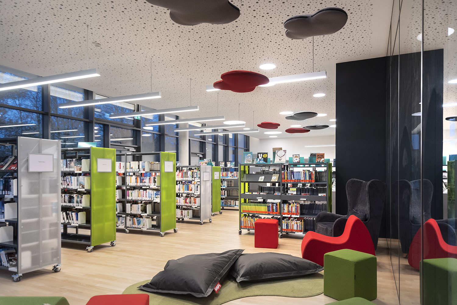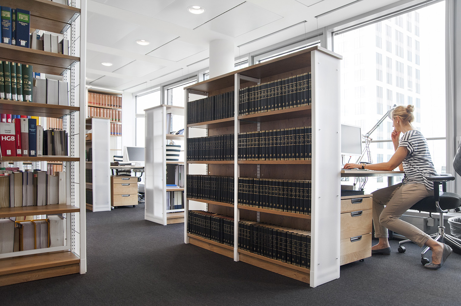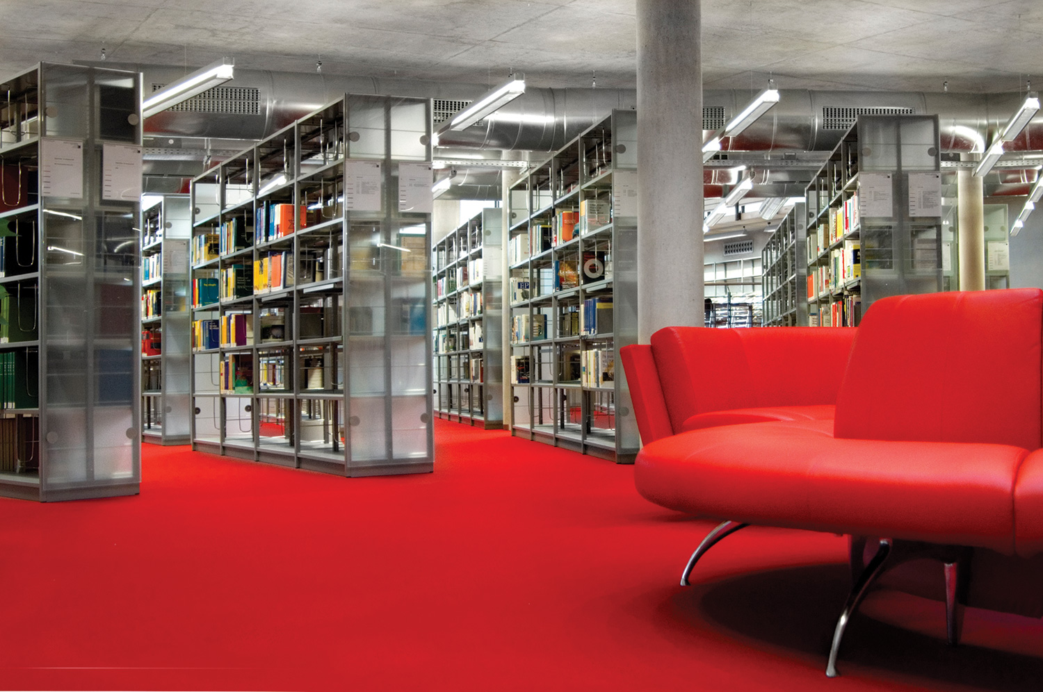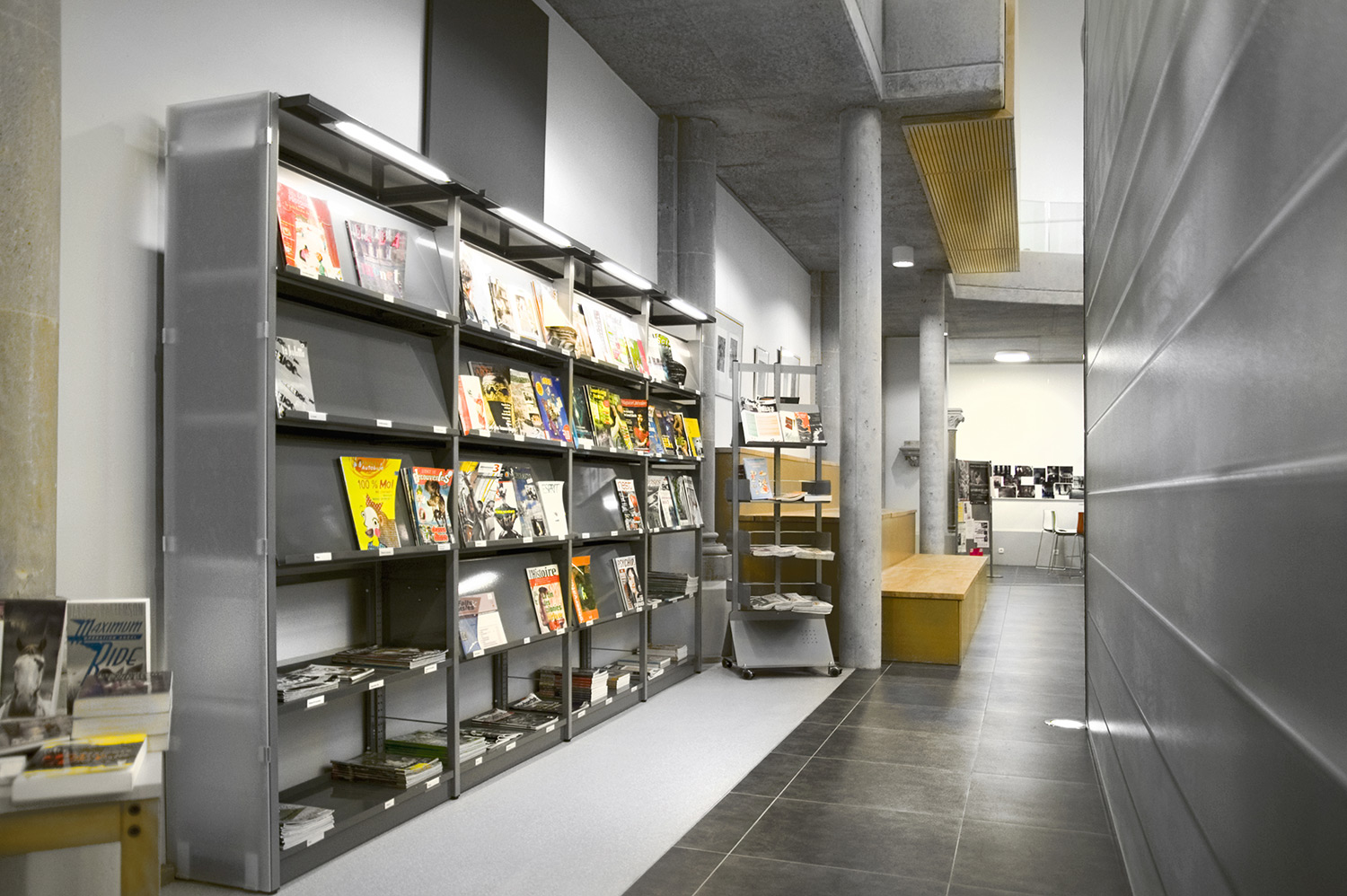 The sturdy shelving system with 30 x 30 mm perforated square tubing is ideally suited for use in high volume libraries as well as in public and school libraries. The design of the shelving systems with its 25 mm grid module allows for easy assembly and adjustment without use of specific tools. The bays are pre-fitted with a multifunctional C profile to allow for easy insertion of top and bottom shelf.