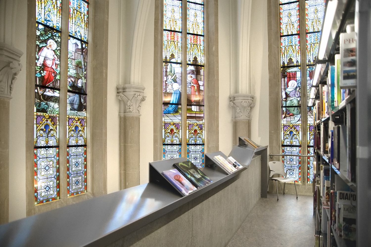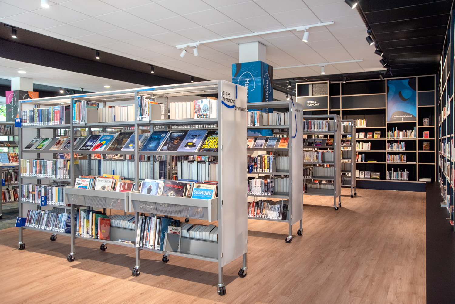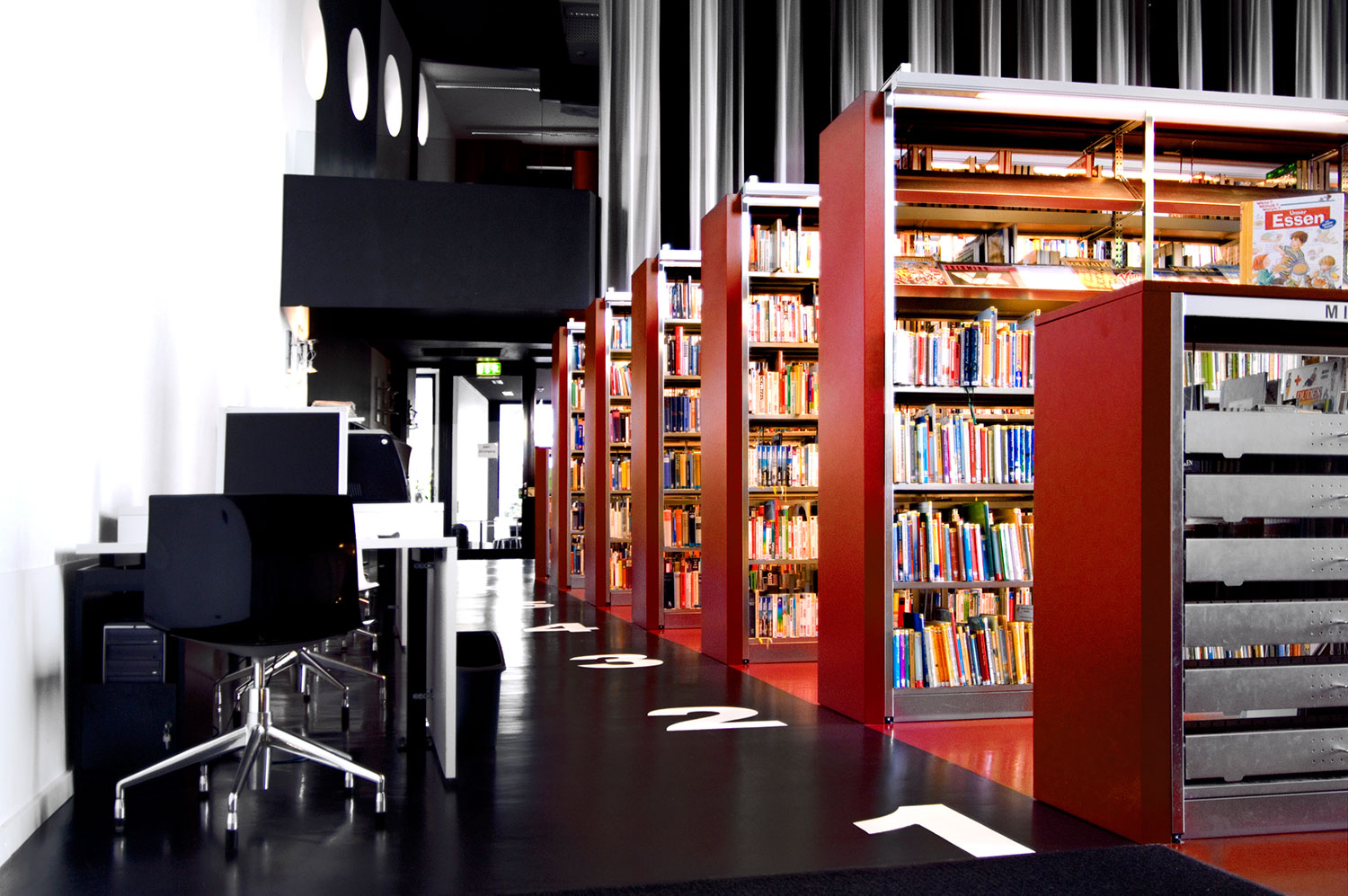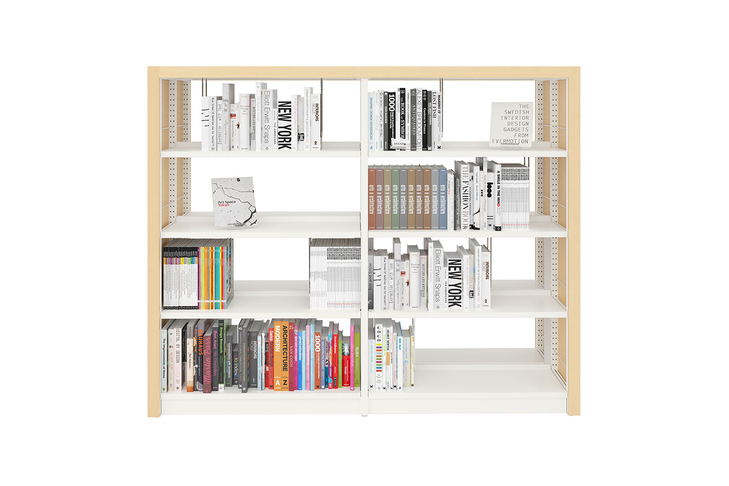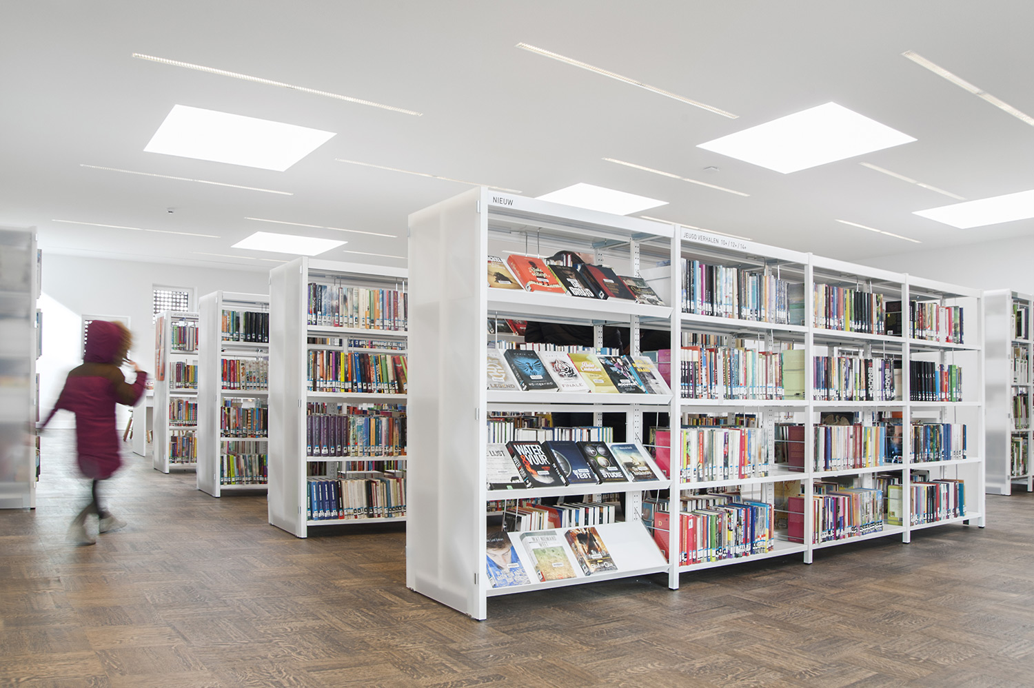 The Uniflex steel shelving is available in two variations – single- and double-sided, both with the option of increasing the height of the bays (from standard 2250 mm up to 3675m m in total). Shelves are available in both steel and wood and several functions can be added to create the right functionality for your library.