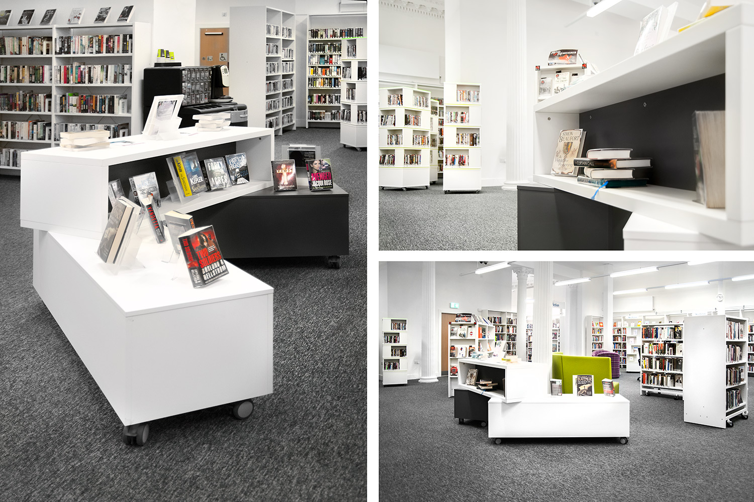 A three-piece, mobile system that combines through swivel joints and a stacked frame, giving multiple options for display and usage. The inside and front partitions can be ordered in contrasting colours and graphics and lettering can also be applied to really accentuate this piece of furniture.